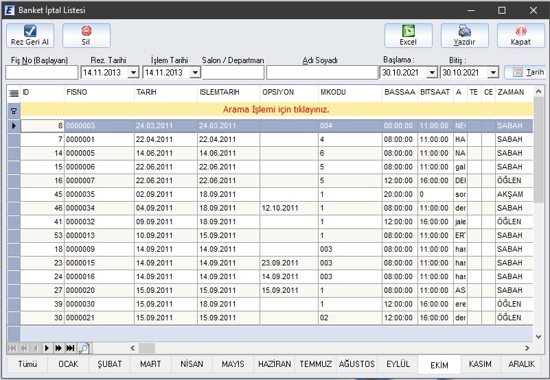 İptal Listesi (Rezervasyonların İptel ve geri alma işlemleri)