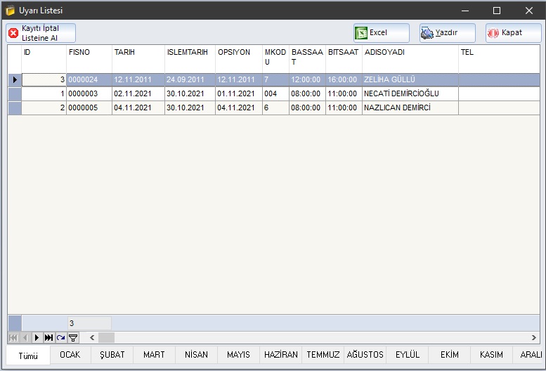 Uyarı Listesinde gelmeyecek rezervasyon iptale alma yapılır.