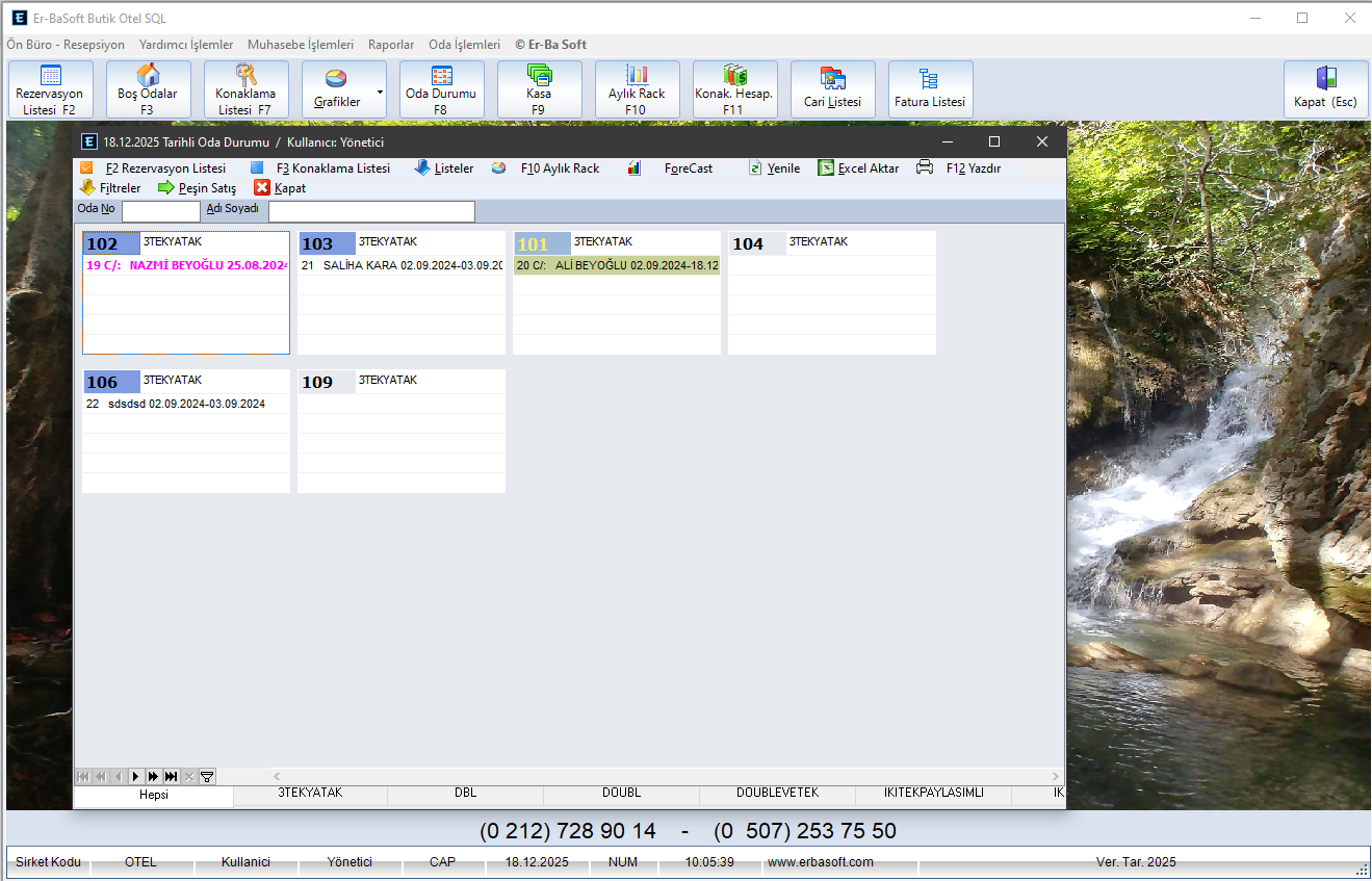 ✔ Önbüro çalışanlarının rutin işlemlerini kolaylaştırmak için tasarlanan aylık oda ekranında Belirlediğiniz tarih aralıklarında ki doluluk oranlarına ulaşabilirsiniz. Tesisinizin tüm odalarına kolayca hakim olabilirsiniz.Tek bir tıklama ile Rezervasyon Oluşturma, Ayrıntılı Rezervasyon, Ön Rezervasyon , Bloke ve Konaklama oda işlemlerine ulaşabilirsiniz